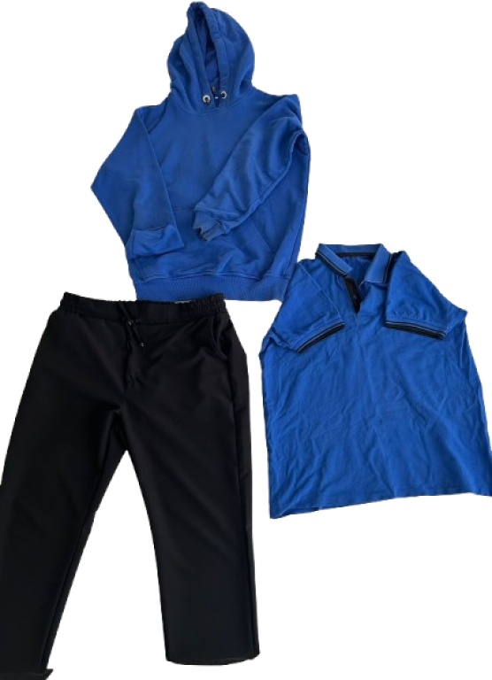 Sweatshirt: Mavi renk, kapşonlu, desensiz